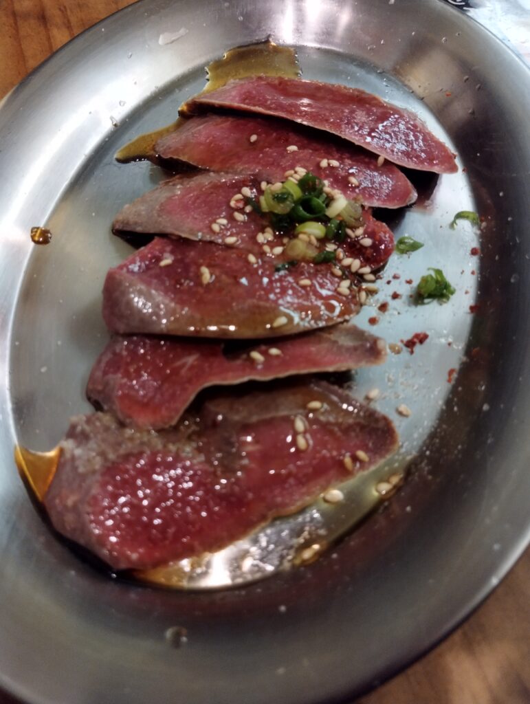 お待ちかねの生肉はと…。低温調理系の刺し。表現はみつからないが、まあうまい。