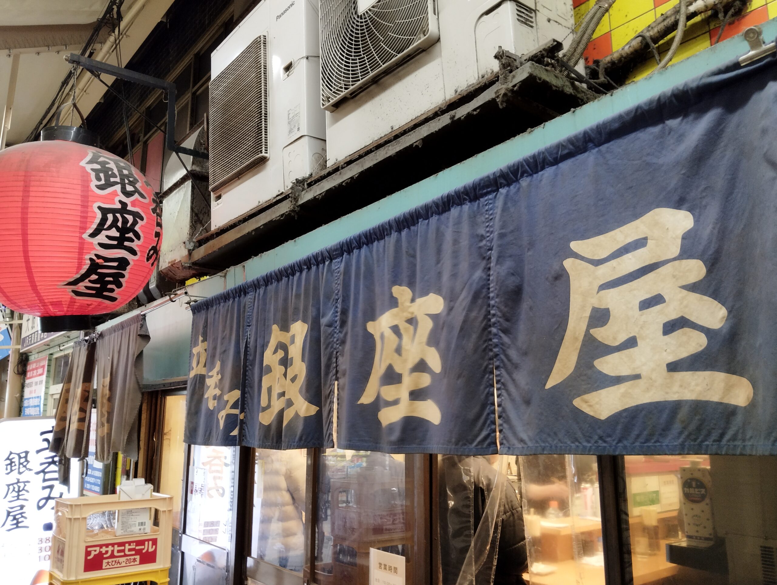 一軒目は天満駅前の「大安」で下地を作り、気持ちも大きくなり、いざ参らん!と店を退店。もっと奥地へ…、もっとディープ・スポットへ…と息巻いていたが、うッ!すぐ隣の酒場に引っかかってしまった。それが「銀座屋」との出会いだった。