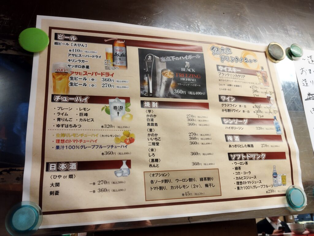 初見だったが、面構えシブすぎ…。アジのあるのれんに「ズキーンと惚れちまったンだよ~~~ッ!!」(小池一夫風)、ということでいつもの外看板や各種エクステリア写真を撮り忘れました。まあ、想像してくれや。