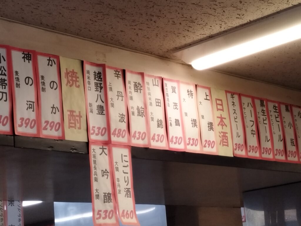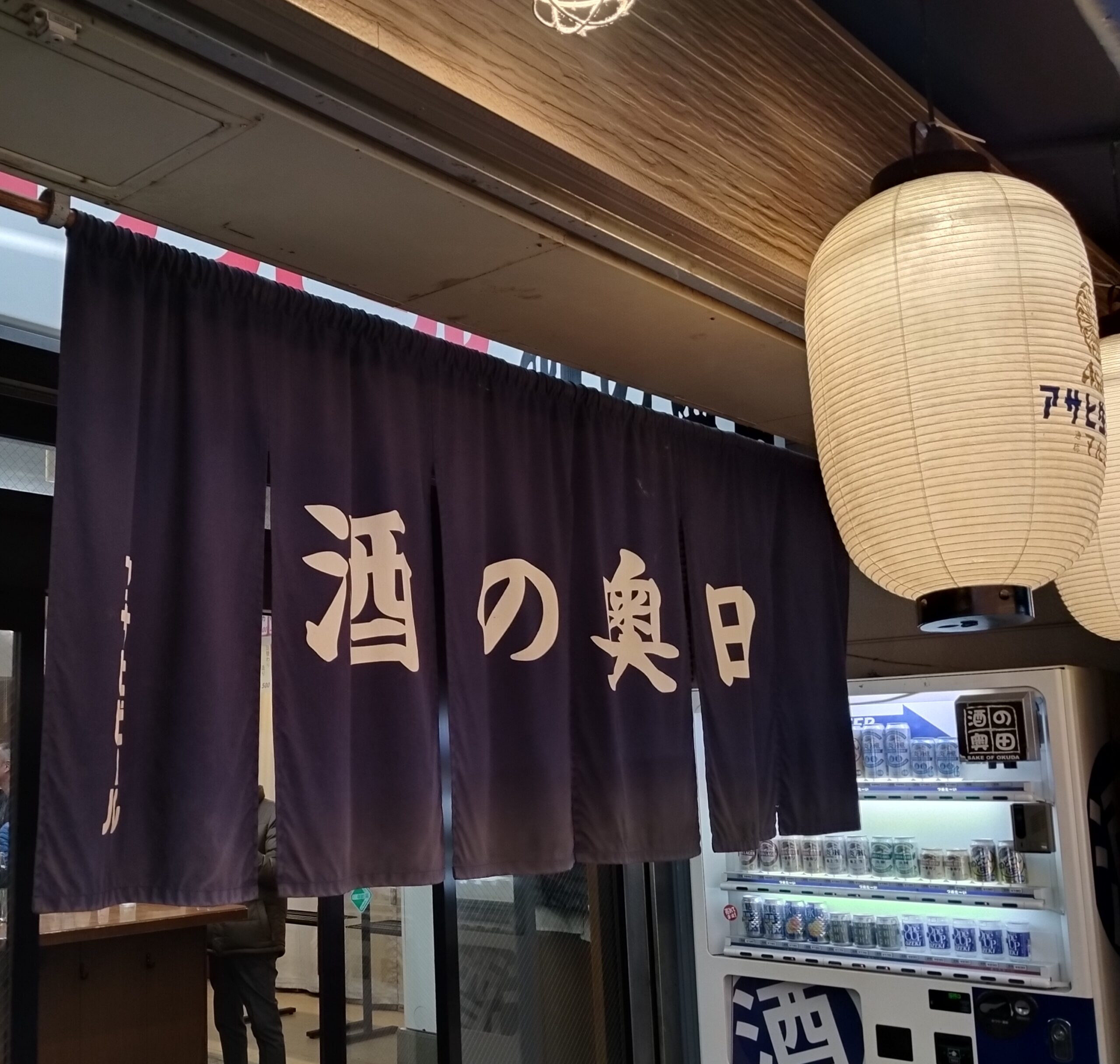 のれんを見ただけで名店感があふれ出ている酒場。外看板やエクステリアをいつものようにチェック。店の前に酒の自動販売機が2台鎮座。呑み足りなければここで買って、追加でグビっ!