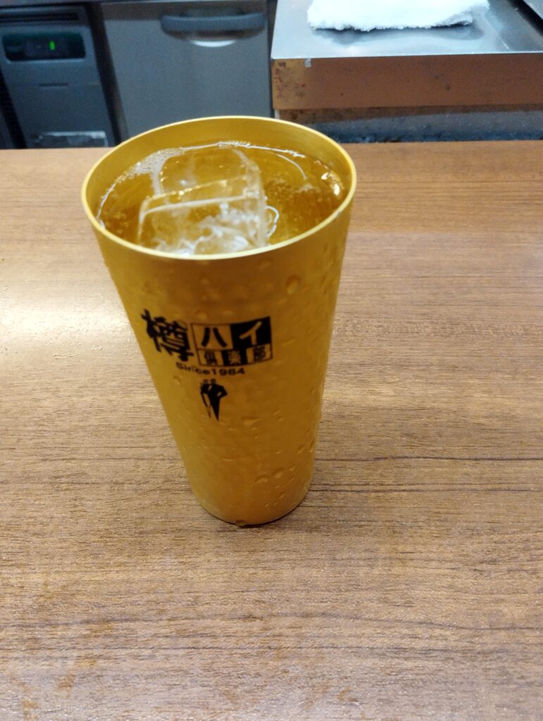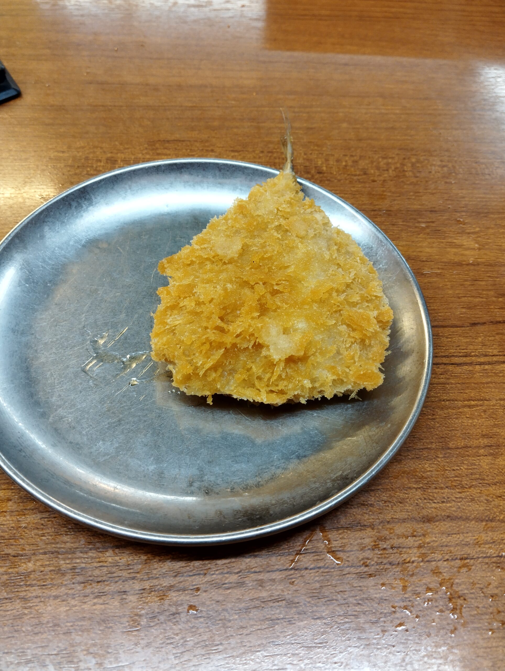 アジフライは小ぶりながら味はよい。チューハイはここらへんで枯渇、お次の飲料はわかるよな…?