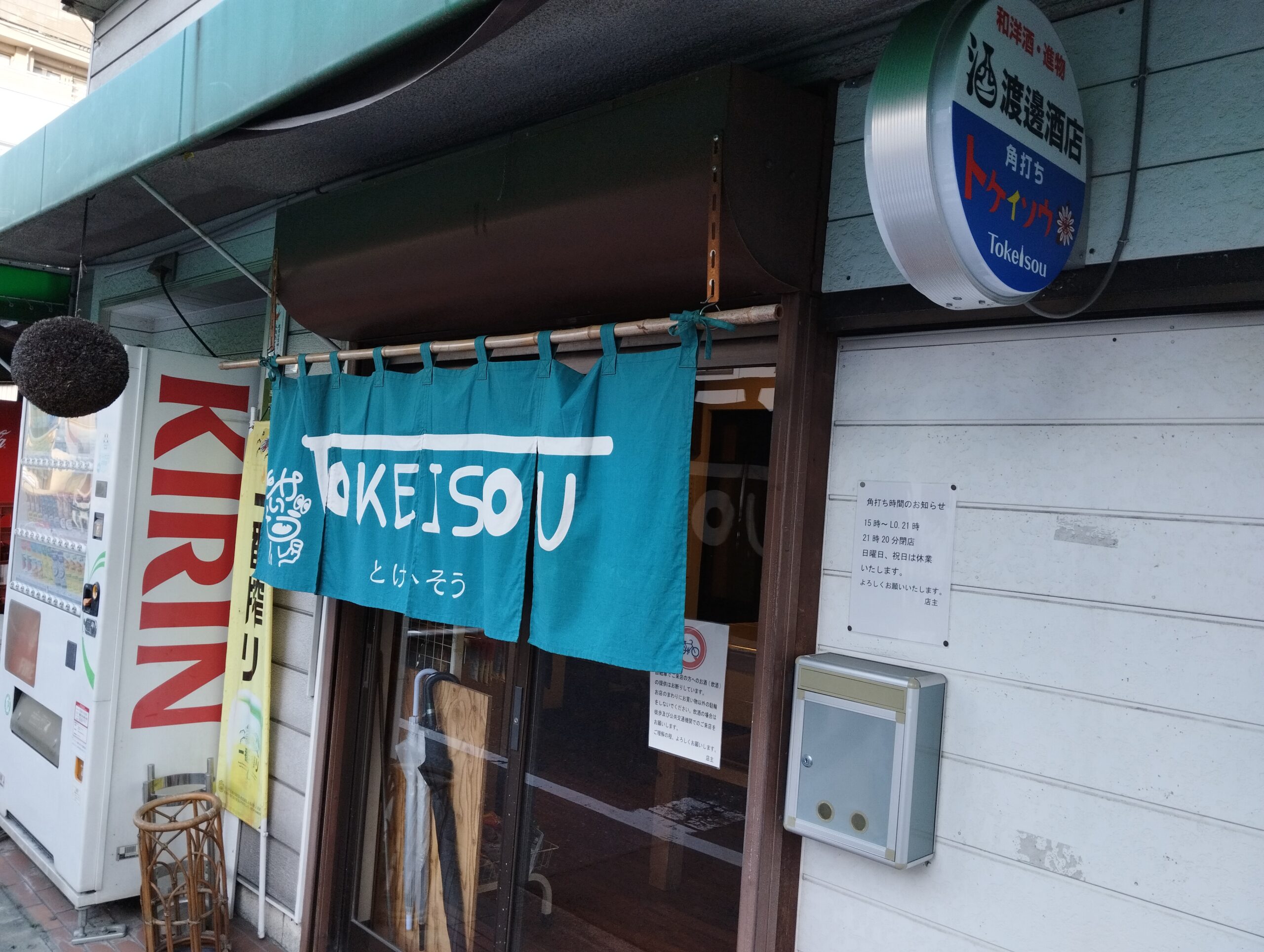 横川駅から徒歩10分ほどだろうか、渡邊酒店が運営する角打ち「トケイソウ」、角打ち好きとしてはイカないとネ…。