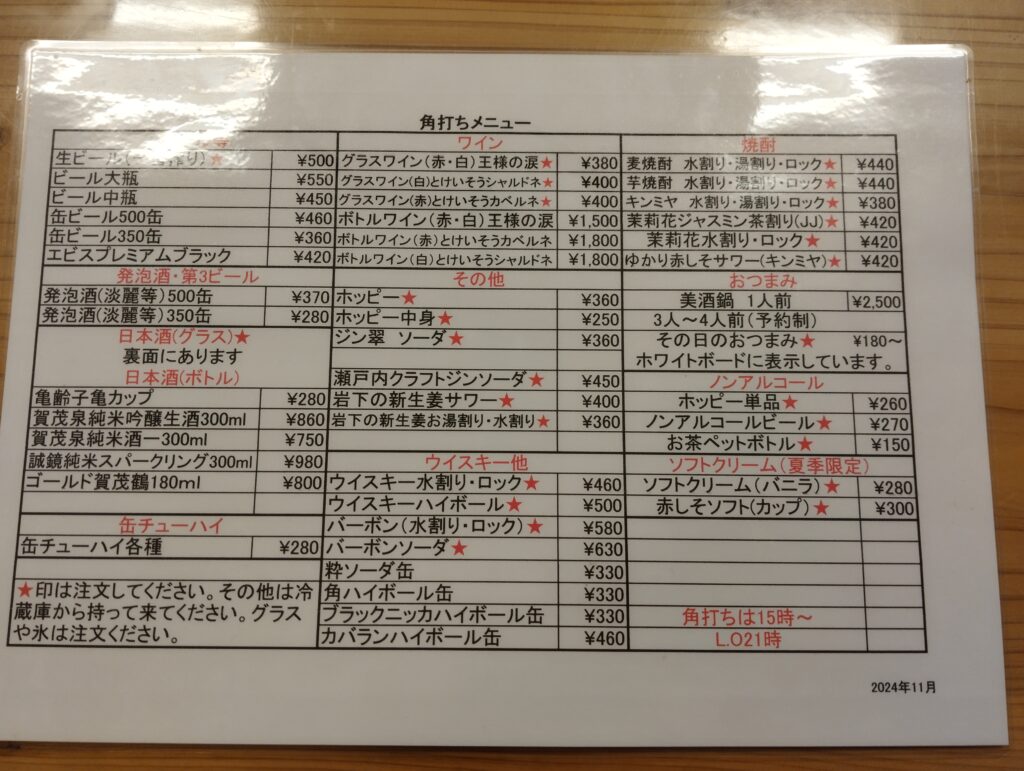 大人飲料はこのメニューの中では、これしかないよな…。これを選ばないとご先祖様も草葉の陰で泣いちまうぜ。“白ホッピー”一択だろ?マスター、お願いします。