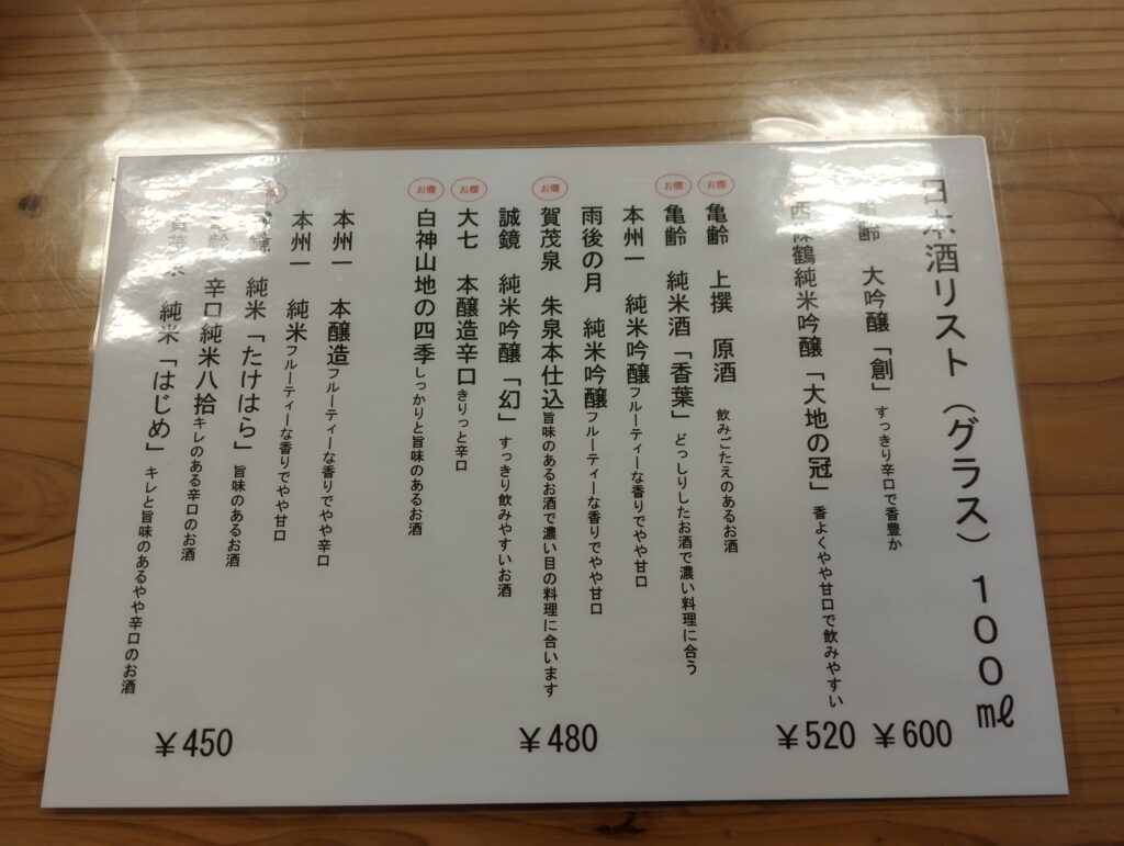 こいつはゴキゲンだな…。角打ちの方はまだ見てもいないが、名店感がヒシヒシと伝わってくる。