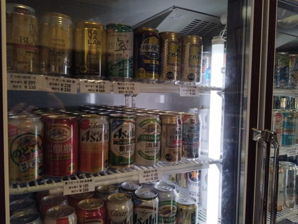 まずは大人飲料だな。厶ホホホ…なかなかバラエティに富んでいるな。ソフトクリームから日本酒まで、まさにゆりかごから墓場までの様相だな…。今日は昇天しちゃってイイですかねぇ…?