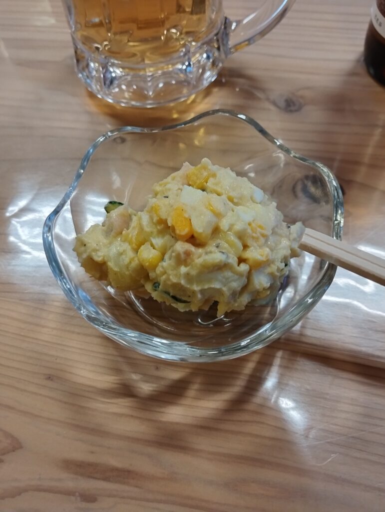 当然ポテサラは一口喰ったら醤油ドバドバ系、健康診断も近いから、塩分とりすぎにはご注意だゼ。