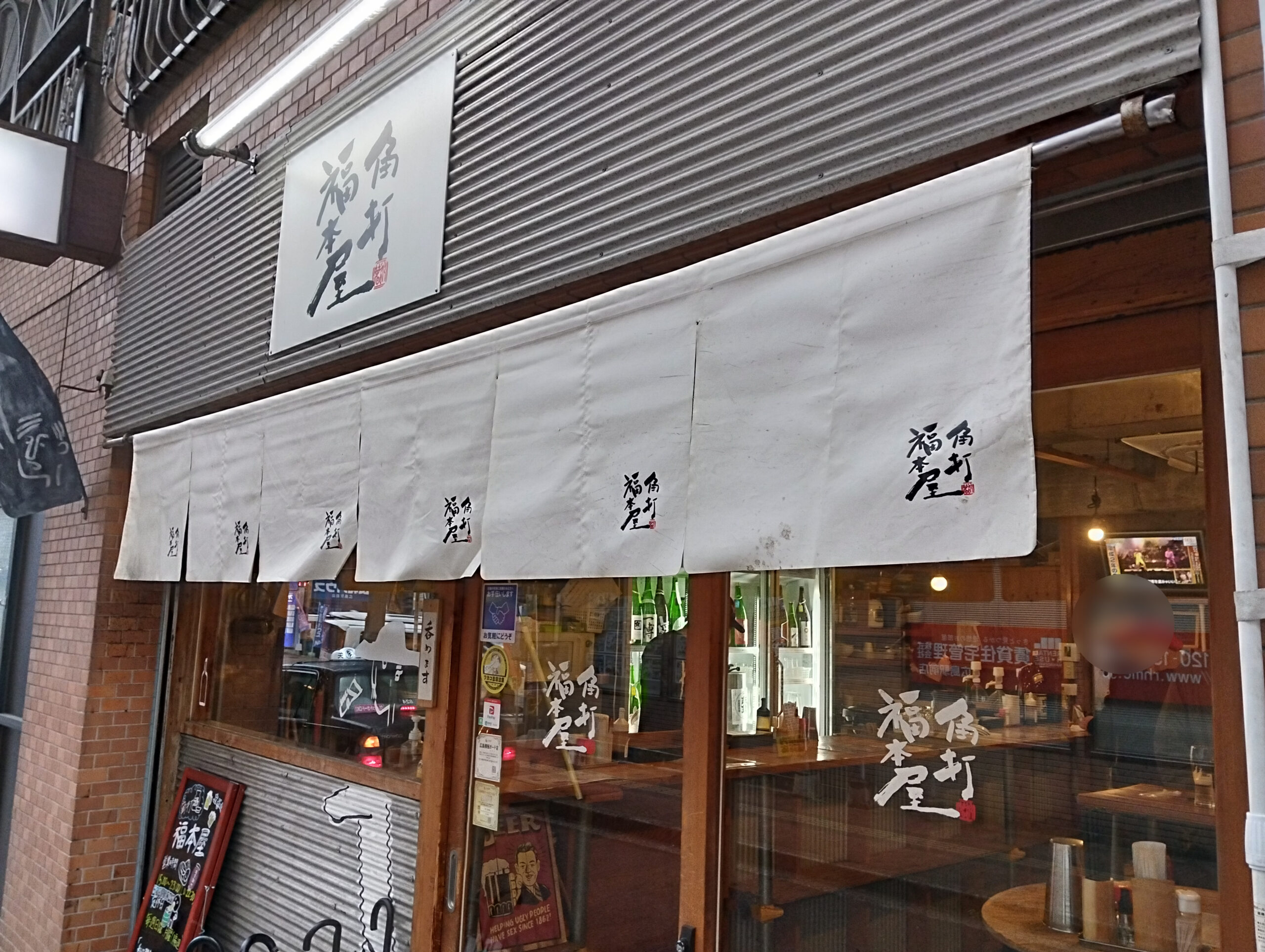 “今日は日本酒を呑みたい気分なの…💛”、歩いていたら、ほらよ?「角打福本屋」に出会っちまったな…。まずは、いつものエクステリアチェック。“福本屋”ってまさかあの「立ち呑み 福本屋」系列か…?“呑めます”看板を横目に入店確定だな…。おっと、その前に、外看板のテキストを紹介しよう。