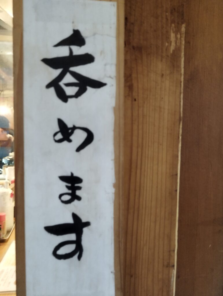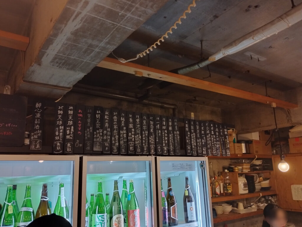 カウンターに通される。確信に変わったな。日本酒メニューが“立ち呑み 福本屋”と一致、店員氏にも裏どりしたがやはり系列店とのこと。ってことは…“よおけぇ呑める店”ってことだナ…?