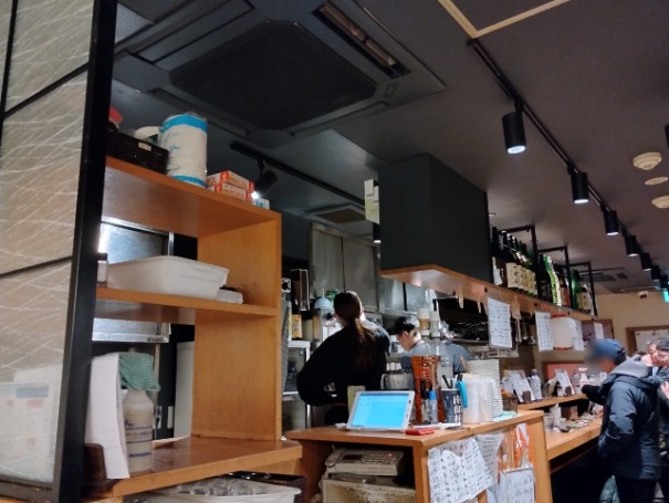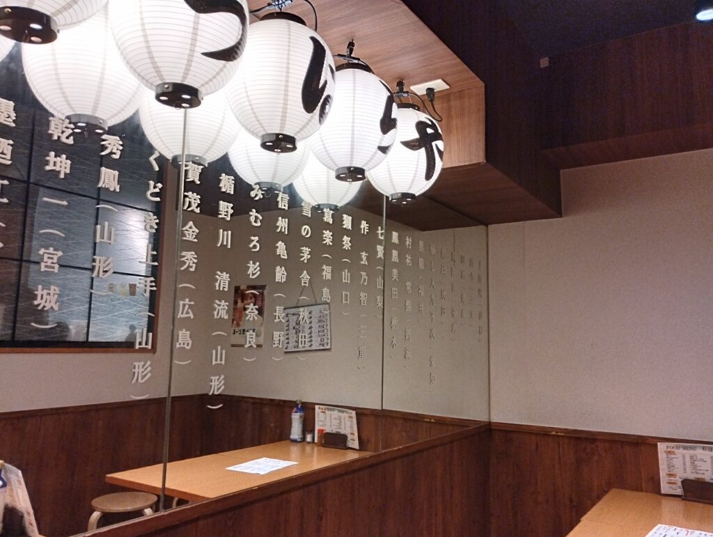 店内には、日本酒ラベルが所せましと貼られており、日本酒へのこだわりを感じる。