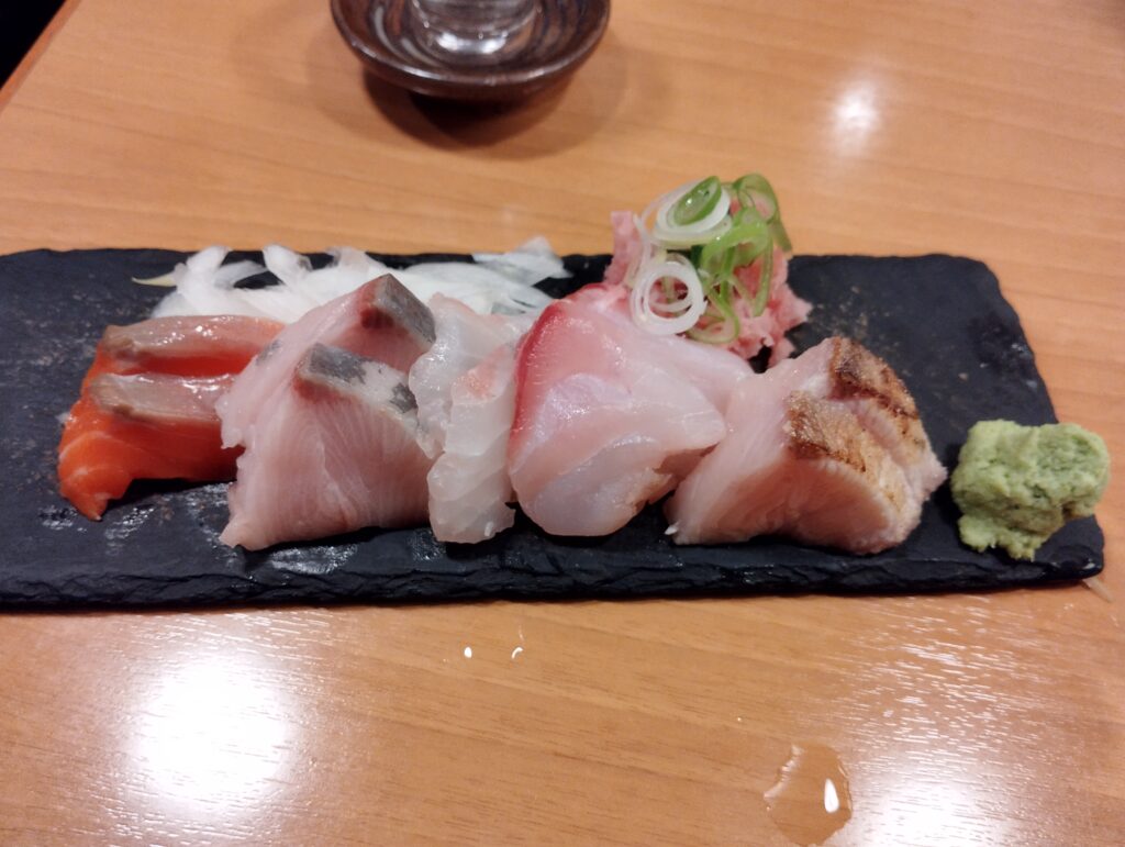 つまみを何にするか、、刺身、串、各種一品料理がある。日本酒とあわせたいので、魚をチョイス。