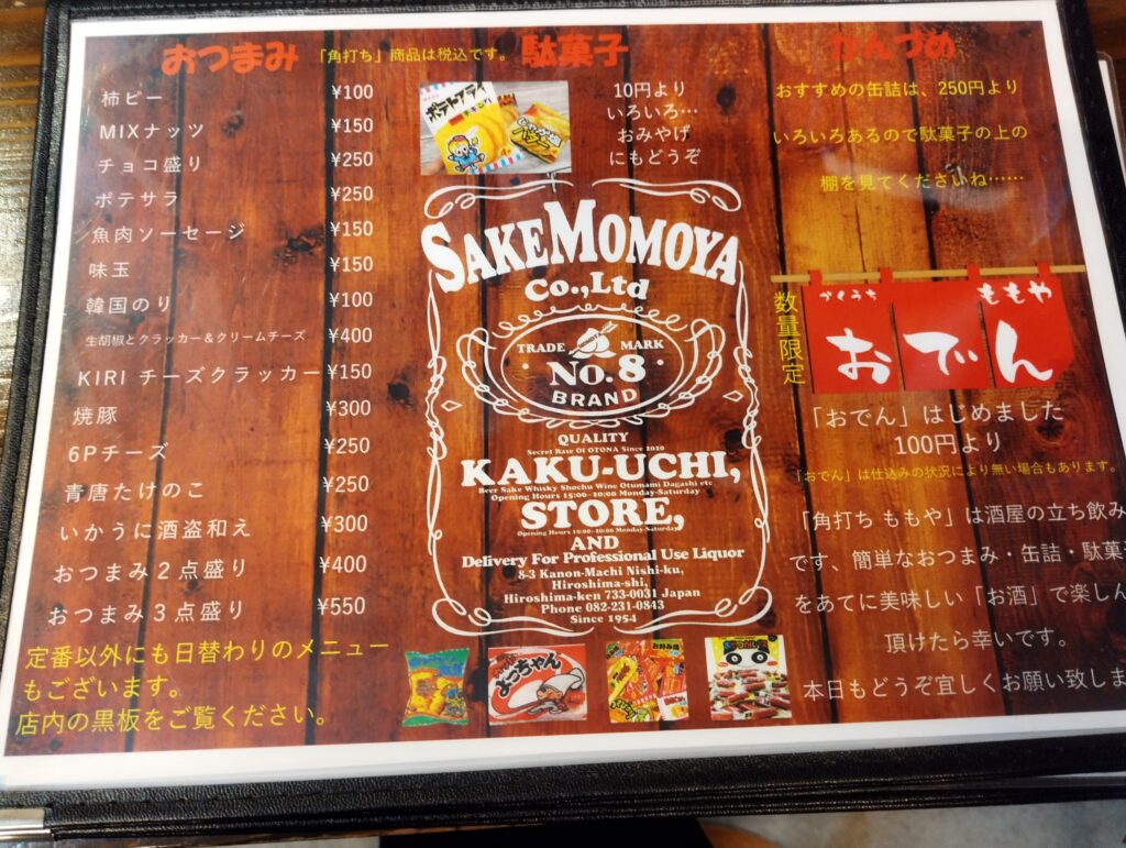 今日は仕事帰りに広島にある「角打ち ももや」へ。